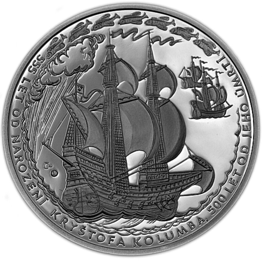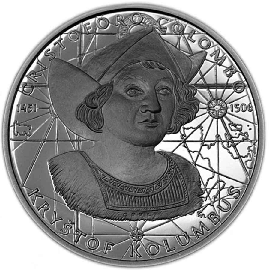 Kryštof Kolumbus Velká stříbrná pamětní medaile 42 gramů Autor ak. soch. Vladimír Oppl Rytec Lubomír Lietava Ražba: Česká mincovna průměr: 50 mm, hmotnost: 42 g ryzost: 999/1000 Ag hrana hladká, číslovaná náklad provedení proof - 500 ks číslované + 50 ks doražba emise rok 2006